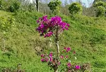 光叶子花,别名:宝巾、簕杜鹃、小叶九重葛、三角花、紫三角、紫亚兰、三角梅,是紫茉莉科、叶子花属藤状灌木。茎粗壮,枝下垂,无毛或疏生柔毛;刺腋生,长5-15毫米。叶片纸质,卵形或卵状披针形,…全部>>