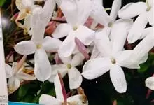 素馨花,木犀科素馨属多年生的攀援灌木植物。攀援灌木,小枝圆柱形,具棱或沟;叶对生,叶轴常具窄翼,小叶片卵形或长卵形;聚伞花序顶生或腋生,花序梗长,苞片线形,花萼无毛,裂片锥状线形,花冠白色,…全部>>