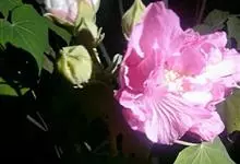 木芙蓉,锦葵科木槿属落叶灌木或小乔木。小枝上有细绒毛;叶片为卵状心形,托叶为披针形,常早落;花单生,花萼为钟形,花冠初为白色或淡红色,后逐渐变为深红色;果实为扁球形,有淡黄色的毛附着。花期8到10月。…全部>>