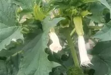 曼陀罗,茄科曼陀罗属一年生大型草本植物,全株光滑。有臭气;叶呈广卯形,边缘具不规则波状浅齿裂;花单生于枝杖间或叶腋,直立,有短梗;花萼是筒状裂片三角形,颜色为白色或淡紫色;果实为蒴果卵状,…全部>>