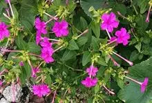 即紫茉莉,英文名:Four-o'clock,Marvel of Peru,为紫茉莉科、紫茉莉属多年生草本植物,一年生栽培。株高50~80cm。根粗壮,茎多分枝而散生。叶对生,卵形或心脏形。花数朵簇生…全部>>