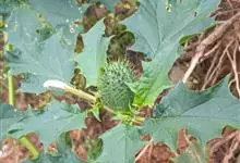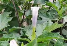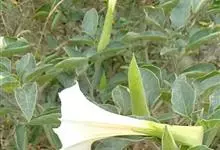 曼陀罗,茄科曼陀罗属一年生大型草本植物,全株光滑。有臭气;叶呈广卯形,边缘具不规则波状浅齿裂;花单生于枝杖间或叶腋,直立,有短梗;花萼是筒状裂片三角形,颜色为白色或淡紫色;果实为蒴果卵状,…全部>>