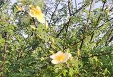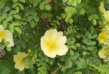 黄木香花 Rehd.)是蔷薇科、蔷薇属植物,为木香花的变型品种,攀缘小灌木,高可达6米。小叶3-5枚,稀7枚,小叶片椭圆形或长圆状披针形,先端急尖或稍钝,基部近圆形或宽楔形,边缘有紧贴细锯齿。花小型,…全部>>