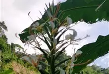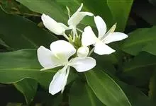 姜花又名野姜花。是姜科姜花属的多年生草本植物,茎高1-2米;叶片长圆状披针形或披针形,叶面光滑,叶背被短柔毛;穗状花序顶生,椭圆形,花芬芳,白色;蒴果卵状三棱形,微黄绿色;种子鲜红色,具橘红色的假种皮。…全部>>