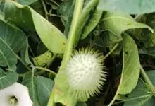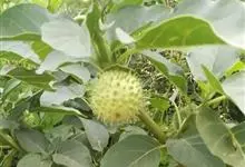 曼陀罗,茄科曼陀罗属一年生大型草本植物,全株光滑。有臭气;叶呈广卯形,边缘具不规则波状浅齿裂;花单生于枝杖间或叶腋,直立,有短梗;花萼是筒状裂片三角形,颜色为白色或淡紫色;果实为蒴果卵状,…全部>>