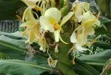 黄姜花:姜科,姜花属多年生草本草本芳香花卉,秋冬季开花,穗状花序,长圆形;苞片长椭圆形,覆瓦状排列,每一苞片内有花3-5朵;花深黄色,形似蝴蝶,气味芬芳纯正,沁人心脾;唇瓣倒心形,黄色,…全部>>