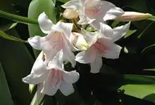 姜花又名野姜花。是姜科姜花属的多年生草本植物,茎高1-2米;叶片长圆状披针形或披针形,叶面光滑,叶背被短柔毛;穗状花序顶生,椭圆形,花芬芳,白色;蒴果卵状三棱形,微黄绿色;种子鲜红色,具橘红色的假种皮。…全部>>