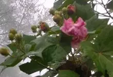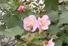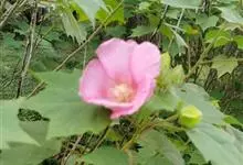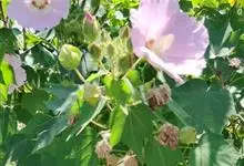 木芙蓉,锦葵科木槿属落叶灌木或小乔木。小枝上有细绒毛;叶片为卵状心形,托叶为披针形,常早落;花单生,花萼为钟形,花冠初为白色或淡红色,后逐渐变为深红色;果实为扁球形,有淡黄色的毛附着。花期8到10月。…全部>>