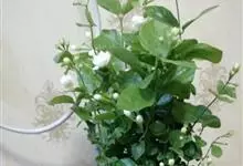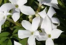 素馨花,木犀科素馨属多年生的攀援灌木植物。攀援灌木,小枝圆柱形,具棱或沟;叶对生,叶轴常具窄翼,小叶片卵形或长卵形;聚伞花序顶生或腋生,花序梗长,苞片线形,花萼无毛,裂片锥状线形,花冠白色,…全部>>