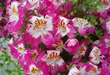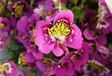 蛾蝶花是茄科,蛾蝶花属一二年生草本植物,全株疏生微粘的腺毛,原种高可达100厘米,叶互生。圆锥花序,顶尘,花多,花瓣平展,花瓣的基部色较深,大多为红色、紫色、堇色,并有黄色斑块。花色丰富,3-4月开放。…全部>>