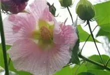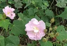 木芙蓉,锦葵科木槿属落叶灌木或小乔木。小枝上有细绒毛;叶片为卵状心形,托叶为披针形,常早落;花单生,花萼为钟形,花冠初为白色或淡红色,后逐渐变为深红色;果实为扁球形,有淡黄色的毛附着。花期8到10月。…全部>>