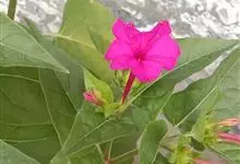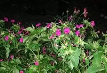 即紫茉莉,英文名:Four-o'clock,Marvel of Peru,为紫茉莉科、紫茉莉属多年生草本植物,一年生栽培。株高50~80cm。根粗壮,茎多分枝而散生。叶对生,卵形或心脏形。花数朵簇生…全部>>