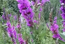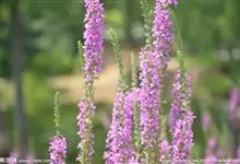 千屈菜是千屈菜科千屈菜属的多年生草本植物;根茎粗壮;叶披针形或宽披针形,无柄;花序簇生,呈聚伞状,花梗及花序梗甚短,花枝似一大型穗状花序,红紫色或淡紫色,苞片宽披针形或三角状卵形;果实为蒴果,扁圆形。…全部>>