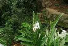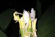 姜花又名野姜花。是姜科姜花属的多年生草本植物,茎高1-2米;叶片长圆状披针形或披针形,叶面光滑,叶背被短柔毛;穗状花序顶生,椭圆形,花芬芳,白色;蒴果卵状三棱形,微黄绿色;种子鲜红色,具橘红色的假种皮。…全部>>