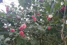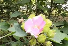 木芙蓉,锦葵科木槿属落叶灌木或小乔木。小枝上有细绒毛;叶片为卵状心形,托叶为披针形,常早落;花单生,花萼为钟形,花冠初为白色或淡红色,后逐渐变为深红色;果实为扁球形,有淡黄色的毛附着。花期8到10月。…全部>>