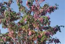 红花刺槐是豆科刺槐属的植物。其干皮深纵裂;枝具托叶刺,羽状复叶互生,叶片卵形或长圆形,具芒尖;基部圆形。花两性;总花序下垂;花冠粉红色,芳香;果条状长圆形,腹缝有窄翅。花期4~5月,果期9~10月。…全部>>
