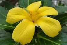 时钟花是时钟花科植物时钟花的根或全草,常绿灌木或半灌木。株高约60-90cm,叶互生,为长卵形,边缘有居齿,叶基有一对明显的腺体;花朵开于枝条末端的叶腋处,花冠金黄色,5瓣;蒴果,室背开裂或不开裂,…全部>>