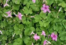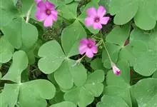 红花酢浆草别名铜锤草、大酸味草、幸运草等,是酢浆草科酢浆草属的多年生直立草本植物。其无地上茎,地下部有球状鳞茎;叶基生,叶柄长5~30cm或更长,被毛;花瓣5,倒心形,淡紫色至紫红色,基部颜色较深。…全部>>
