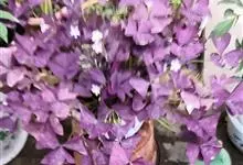 多年生草本,地下块茎粗大。叶丛生,具长柄,掌状复叶,小叶 3枚,无柄,倒三角形,深紫色。紫叶酢浆草植株整齐,叶色紫红,紫红色叶片美丽诱人,粉红色花朵烂漫可爱。有些叶片上有黑色斑点分布,又称斑叶。全部>>