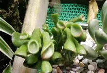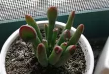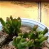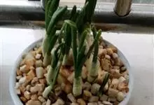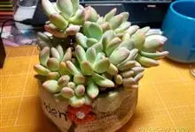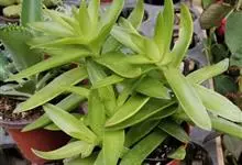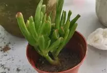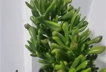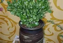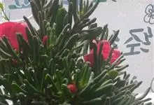 筒叶花月,是景天科青锁龙属的多年生草本植物。植株多分株,灌木状,茎较粗壮,圆柱形,表皮灰褐色;叶片肉质,互生,呈圆筒状,簇生于茎或分枝顶端,叶端呈斜截形,截面为椭圆形;花呈星状,淡白色;花期秋季。…全部>>