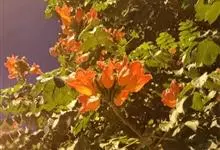 火焰树是紫葳科、火焰树属乔木,树皮平滑,灰褐色。奇数羽状复叶,对生,连叶柄长达45厘米;小叶13-17枚,叶片椭圆形至倒卵形,伞房状总状花序,顶生,密集;被褐色微柔毛,具有明显的皮孔;花冠一侧膨大,…全部>>