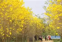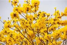 黄金风铃木Nichols),别称:黄花风铃木、黄丝风铃木、金花风铃木、伊蓓树、毛风铃、巴西风铃木。原产墨西哥、中美洲、南美洲,是巴西的国花。每年3、4月开花,花冠漏斗形、五裂,似风铃状,花缘皱曲,花…全部>>