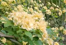 黄木香花 Rehd.)是蔷薇科、蔷薇属植物,为木香花的变型品种,攀缘小灌木,高可达6米。小叶3-5枚,稀7枚,小叶片椭圆形或长圆状披针形,先端急尖或稍钝,基部近圆形或宽楔形,边缘有紧贴细锯齿。花小型,…全部>>