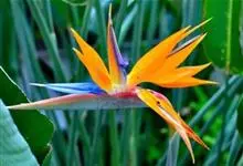 鹤望兰,别名天堂鸟,为鹤望兰科鹤望兰属的一种多年生草本植物;无木质树干;花序生于与叶柄近等长或稍短的花序梗上,佛焰苞1;花较小,萼片橙黄色,长7.5-10厘米,箭头状花瓣基部具耳状裂片,…全部>>
