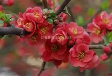 贴梗海棠Nakai)是蔷薇科、木瓜海棠属植物。落叶灌木,高达2米,枝条直立开展,有刺。叶片卵形至椭圆形,稀长椭圆形,长3-9厘米,宽1.5-5厘米。花先叶开放,3-5朵簇生于二年生老枝上。…全部>>