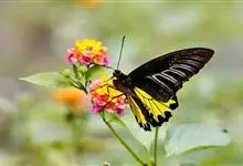 金裳凤蝶是凤蝶科、裳凤蝶属的动物。金裳凤蝶身体呈黑色,头、颈和胸侧有红毛,腹部有黑黄两色相间条纹,雄蝶前翅黑色,具黑天鹅绒光泽,各脉两侧灰白色,后翅金黄色,各室外缘有等腰三角形黑斑1枚,斑内侧有晕,…全部>>