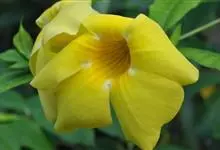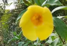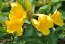 大花软枝黄蝉是软枝黄蝉的一个变种,夹竹桃科黄蝉属植物。藤状灌木,长达4米,枝条软弯垂,具白色乳汁。叶纸质,椭圆形、卵圆形或倒卵形,花序着花4-5朵,花冠比原变种大形,橙黄色,花冠喉部具5个发亮的斑点…全部>>