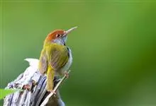 普通缝叶莺,是雀形目鹅科莺亚科缝叶莺属一种。体长10-14厘米,体重7-10克,雄鸟前额棕红,头顶至枕棕橄榄褐,上体橄榄绿染黄,飞羽及尾羽暗褐;繁殖期雄鸟的中央尾羽特形延长,下体淡皮黄白色。…全部>>