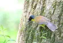 黄喉噪鹛体型略小,顶冠蓝灰色,特征为具黑色的眼罩和鲜黄色的喉。上体褐色,尾端黑色而具白色边缘,腹部及尾下覆羽皮黄色而渐变成白色。黄喉噪鹛隐匿于亚热带常绿林和浓密灌丛,于地面杂物中取食,喜食昆虫,…全部>>