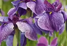 花菖蒲:是玉蝉花的变种。多年生宿根挺水型水生花卉。根状茎短而粗,须根多并有纤维状枯叶梢,叶基生,线形,叶中脉凸起,两侧脉较平整。花葶直立并伴有退化叶1-3枚。花大直径可达15厘米。外轮三片花瓣呈椭圆…全部>>