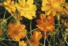 黄秋英是菊科秋英属的一年生草本植物。枝叶为对生的二回羽状复叶,裂片呈披针形;花为舌状花,有单瓣和重瓣两种,颜色多为黄、金黄、橙色,红色;瘦果棕褐色,粗糙有毛,顶端有细长喙;春播花期6-8月,…全部>>