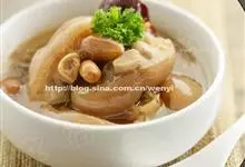 花生猪蹄汤是用花生、猪蹄制作的一道家常菜。 花生含有维生素E和一定量的锌,能增强记忆,抗老化,延缓脑功能衰退,滋润皮肤。全部>>