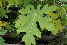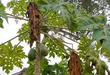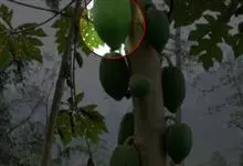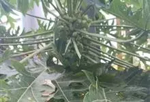番木瓜,番木瓜科番木瓜属的常绿软木质小乔木,高达10米,具有乳汁;茎不分枝或有时于损伤处分枝;叶大且聚生于茎顶,近似盾形,叶柄中空;花单性或两性,有些品种雄株偶尔生两性花或雌花,…全部>>