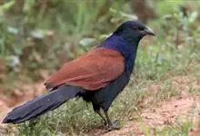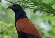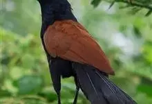 褐翅鸦鹃,是鹃形目鸦鹃科鸦鹃属的鸟类。褐翅鸦鹃的身体为黑色;头颈和胸带蓝紫色金属光泽并具黑亮的羽干纹,下胸至腹部泛金属绿光泽;两翼和肩部为棕栗色,外侧飞羽具暗色羽端,尾羽闪铜绿色光泽;虹膜赤红色,…全部>>