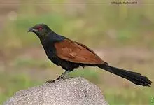褐翅鸦鹃,是鹃形目鸦鹃科鸦鹃属的鸟类。褐翅鸦鹃的身体为黑色;头颈和胸带蓝紫色金属光泽并具黑亮的羽干纹,下胸至腹部泛金属绿光泽;两翼和肩部为棕栗色,外侧飞羽具暗色羽端,尾羽闪铜绿色光泽;虹膜赤红色,…全部>>