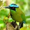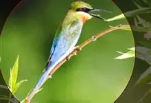 蓝喉蜂是蜂虎科蜂虎属鸟类。体长26-28厘米,嘴长而弯曲,有明显细长的中央尾羽。头部、颈部和背部为巧克力色,有黑色眼纹。喉部、腰部和尾羽为蓝色。腹部和两翼为绿色。幼鸟外观似成鸟,头部、颈部和背部为绿色,…全部>>