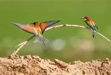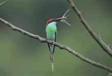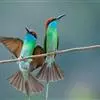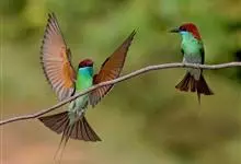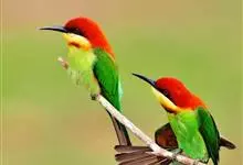 蓝颊蜂虎:是蜂虎科、蜂虎属的鸟类,共有2个亚种。体长27-33厘米,翼展46-49厘米,体重38-50克。嘴形细长而下弯,先端尖,…全部>>