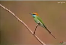 绿喉蜂虎是佛法僧目、蜂虎科的小型鸟类,共有9个亚种。身长22-25厘米,翼展29-30厘米,体重15-20克。喉绿色,额部、头顶至上背为锈红色,其余上体均为亮绿色。中央尾羽延长且端段狭细,…全部>>