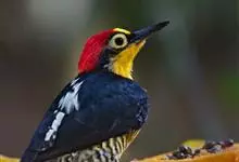 黄喉蜂虎属中型鸟类,体长23-30厘米。喉黄色,其下有一窄的黑色胸带;胸带以下的整个下体蓝绿色。前额蓝白色,具一宽的黑色贯眼纹,头顶至后颈暗栗色,尾蓝绿色,中央尾羽延长,明显突出于其他尾羽。…全部>>