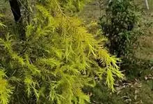 千层金是桃金娘科白千层属植物,常绿乔木。树高可达6-8米,冠幅锥形。主干直立,枝条密集、细长、柔软,嫩枝红色。叶片金黄色,披针形,长2-2.5米,宽0.2厘米左右,具芳香味。穗状花序,花瓣绿白色。果…全部>>