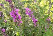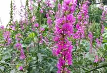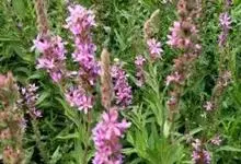 千屈菜是千屈菜科千屈菜属的多年生草本植物;根茎粗壮;叶披针形或宽披针形,无柄;花序簇生,呈聚伞状,花梗及花序梗甚短,花枝似一大型穗状花序,红紫色或淡紫色,苞片宽披针形或三角状卵形;果实为蒴果,扁圆形。…全部>>