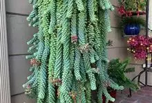 玉缀,别名翡翠景天景天科景天属常绿或半常绿多肉植物。植物匍匐下垂,翠绿色。叶小,多汁,纺锤形,、密密麻麻,似松鼠尾巴。花小,深玫瑰色,春季开放。全部>>