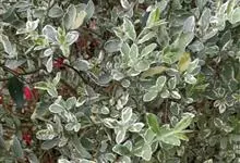 金边黄杨是卫矛科卫矛属的常绿灌木或小乔木,金边黄杨小枝略为四棱形,枝叶密生;单叶对生,倒卵形或椭圆形,边缘具钝齿,表面深绿色,有光泽;聚伞花序腋生,具长梗,花绿白色;蒴果球形,淡红色;花期5~6月。…全部>>