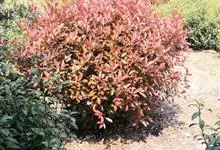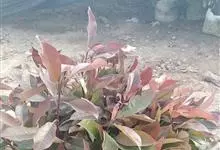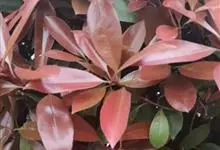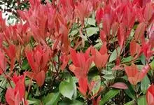 红叶石楠 是蔷薇科,石楠属杂交种,为常绿小乔木或灌木,乔木高可达5米、灌木高可达2米。叶片革质,长圆形至倒卵状、披针形,叶端渐尖,叶基楔形,叶缘有带腺的锯齿,花多而密,复伞房花序,花白色,梨果黄红色,…全部>>