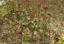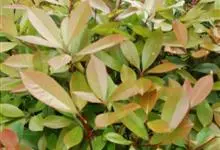 红叶石楠 是蔷薇科,石楠属杂交种,为常绿小乔木或灌木,乔木高可达5米、灌木高可达2米。叶片革质,长圆形至倒卵状、披针形,叶端渐尖,叶基楔形,叶缘有带腺的锯齿,花多而密,复伞房花序,花白色,梨果黄红色,…全部>>