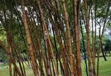 黄金间碧竹 McClure),禾本科簕竹属大型乔木。竿丛生圆柱形,鲜黄色间有宽窄不等的绿色纵条纹;竿基数节有短气生根;箨环上下方各有灰白色绢毛环;箨鞘鲜时绿色有宽窄不等的黄色纵条纹;箨叶直立三角形,…全部>>